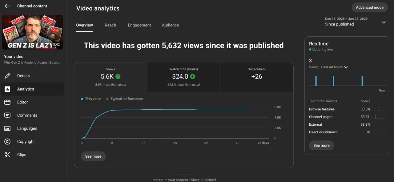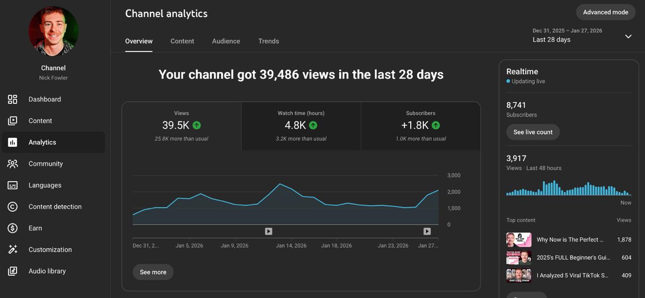 "Since we started working together, my business has grown by over 500%. We built my YouTube channel from zero to 10,000+ subscribers, with videos consistently getting 5k–40k views and bringing in some of my best leads. People are even recognizing me on the street"
